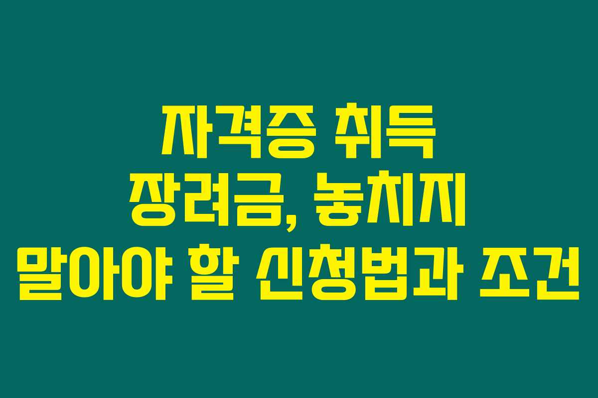 2025년도 자격증 취득 장려금의 신청 방법과 조건에 대해 알기 쉽게 정리했습니다. 자격증을 준비하고 계신 분들이라면 놓치지 말고 꼭 참고해 주세요! 아래를 읽어보시면 자격증 취득 장려금이 어떤 지원을 해주는지, 어떻게 신청해야 하는지에 대한 모든 정보가 담겨 있습니다.