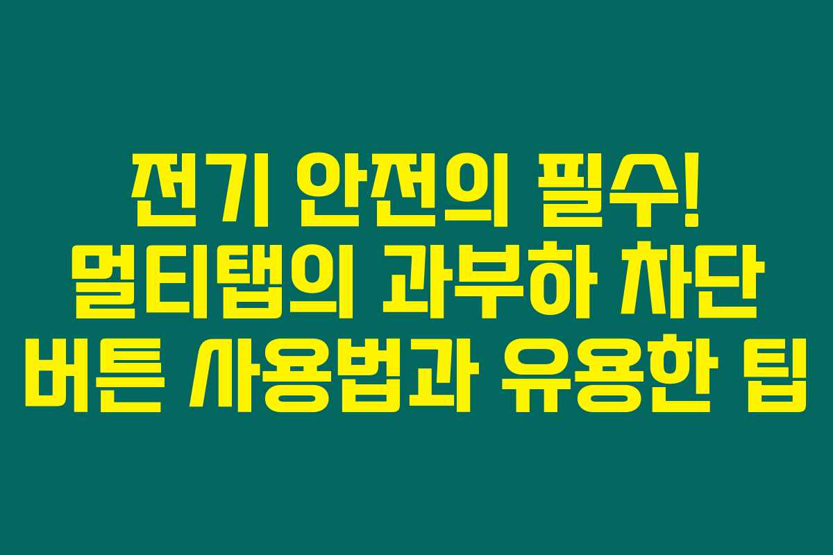 안전한 전기 사용은 우리의 생활에서 매우 중요한 요소인데요. 특히 멀티탭의 과부하 차단 버튼은 화재와 사고를 예방하는 데 중요한 역할을 합니다. 아래를 읽어보시면 멀티탭의 안전 기능과 과부하 차단 버튼을 효율적으로 활용할 수 있는 팁과 노하우를 알찬 내용으로 정리해 드리겠습니다.