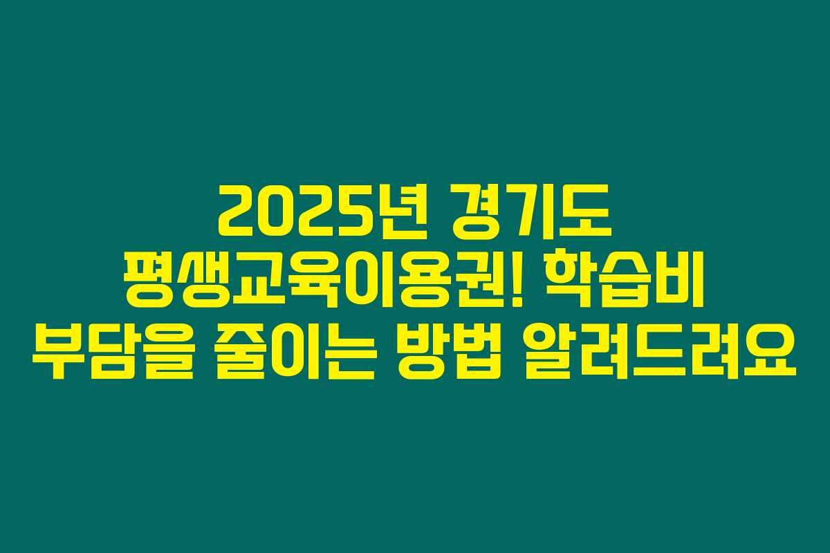 2025년 경기도 평생교육이용권! 학습비 부담을 줄이는 방법 알려드려요