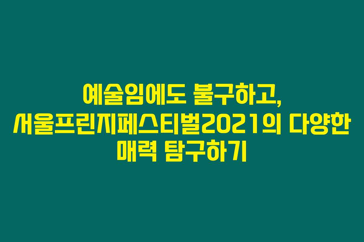 예술임에도 불구하고, 서울프린지페스티벌2021의 다양한 매력 탐구하기