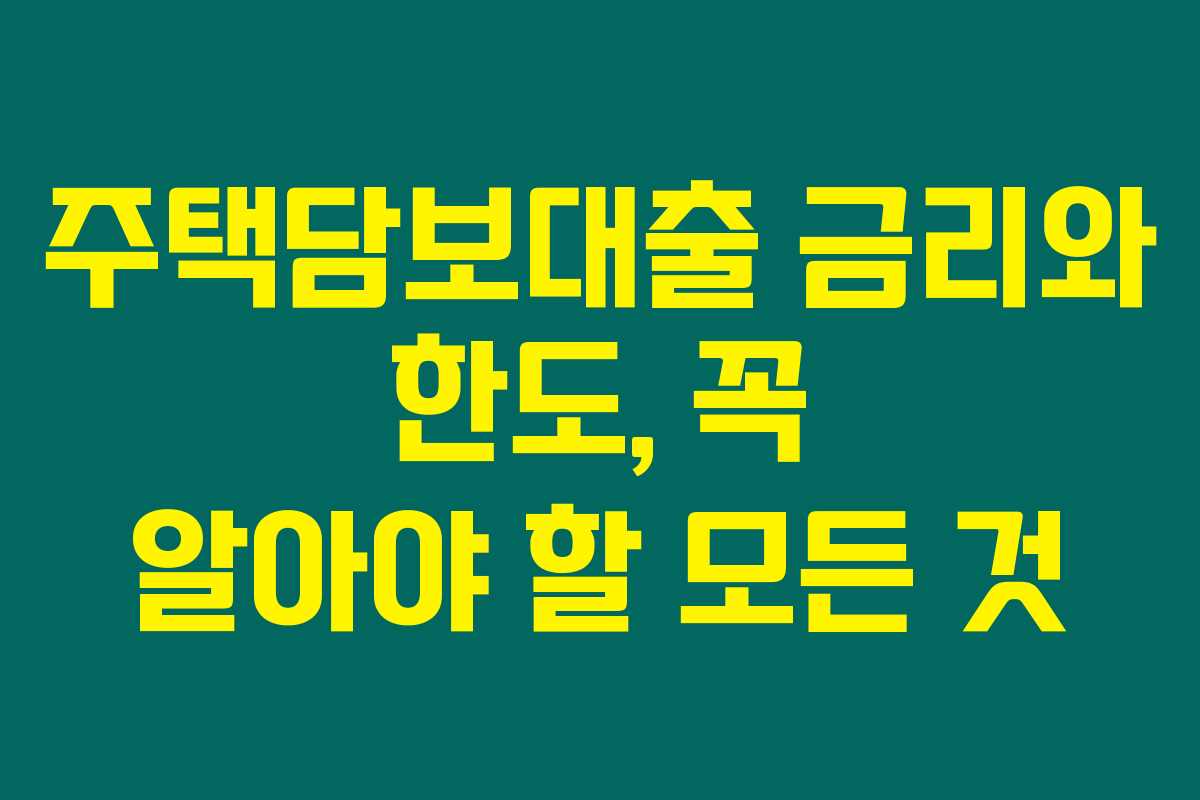 잔금일을 앞두고 있는 주택 구입자들에게 주택담보대출은 정말 중요한 선택지입니다. 주택담보대출의 금리와 한도를 제대로 비교하지 않으면, 나중에 후회할 수 있답니다. 아래를 읽어보시면, 다양한 금융사의 금리와 한도 비교, 조건 및 필요한 서류에 대해 자세히 알려드릴게요.