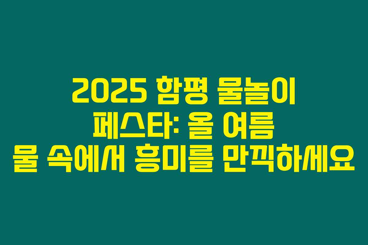2025 함평 물놀이 페스타에서 즐거운 여름 기억을 만들어 보세요. 물속에서 신나는 시간과 함께 소중한 추억을 쌓을 수 있을 것입니다. 여러분의 활기찬 여름을 지원하는 멋진 행사가 될 것이라 믿어 의심치 않아요.