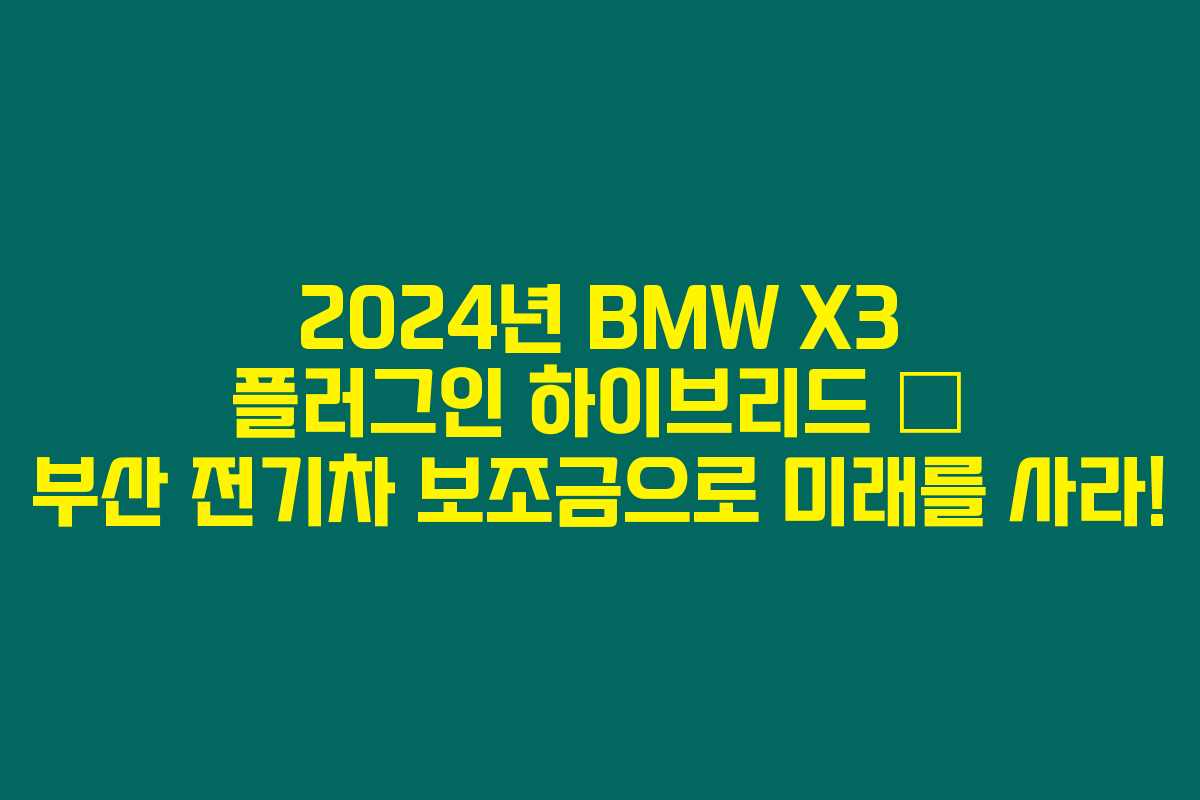2024년 BMW X3 플러그인 하이브리드 모델과 부산 지역의 전기차 보조금을 신중하게 살펴보면, 여러분의 전기차 구매에 많은 도움이 될 수 있을 것입니다. 이 기회를 활용하여 현명한 소비를 즐기세요!