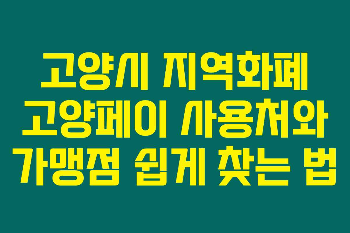 고양시는 지역사회를 위해 적극적으로 지원하는 지역화폐인 고양페이를 운영하고 있어요. 아래를 읽어보시면 고양페이의 사용처와 가맹점을 찾는 다양한 방법을 쉽게 알 수 있습니다. 특히, 소상공인 지원과 지역 경제 활성화에 큰 기여를 하고 있으니 참고해보세요.