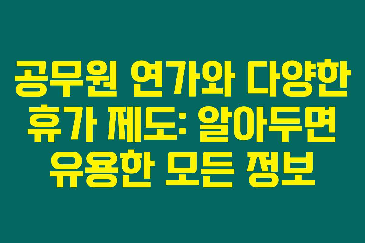 공무원들의 업무에 있어 휴가는 상당히 중요한 요소입니다. 특히, 힘든 업무 환경 속에서 연가는 실제로 직원들이 겪는 스트레스를 경감시키고, 더 나은 성과를 이끌어내는 역할을 하죠. 아래를 읽어보시면 공무원들의 연가, 병가, 공가, 특별휴가 등의 다양한 휴가 제도와 연가보상비에 대한 구체적인 내용과 그 사용법에 대해 잘 이해하실 수 있을 것입니다.