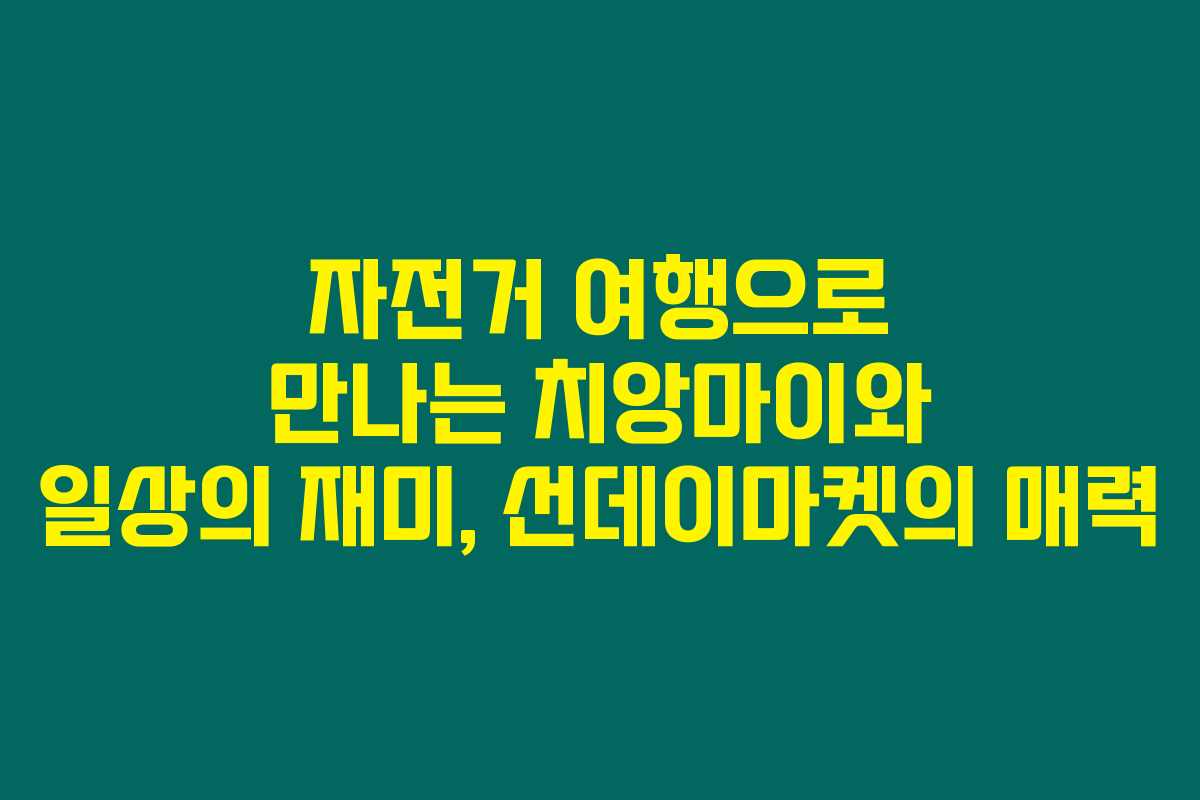 선데이마켓은 자전거 여행 중 빼놓을 수 없는 매력적인 공간이에요. 다양한 먹거리와 물건들이 가득한 이곳에서 우리는 또 하나의 소중한 추억을 쌓을 수 있었어요. 맛있는 태국음식을 맛보는 것은 물론이고, 현지의 다양한 상품들을 구경할 수 있어 여행이 더욱 풍요로워지는 느낌이었죠.