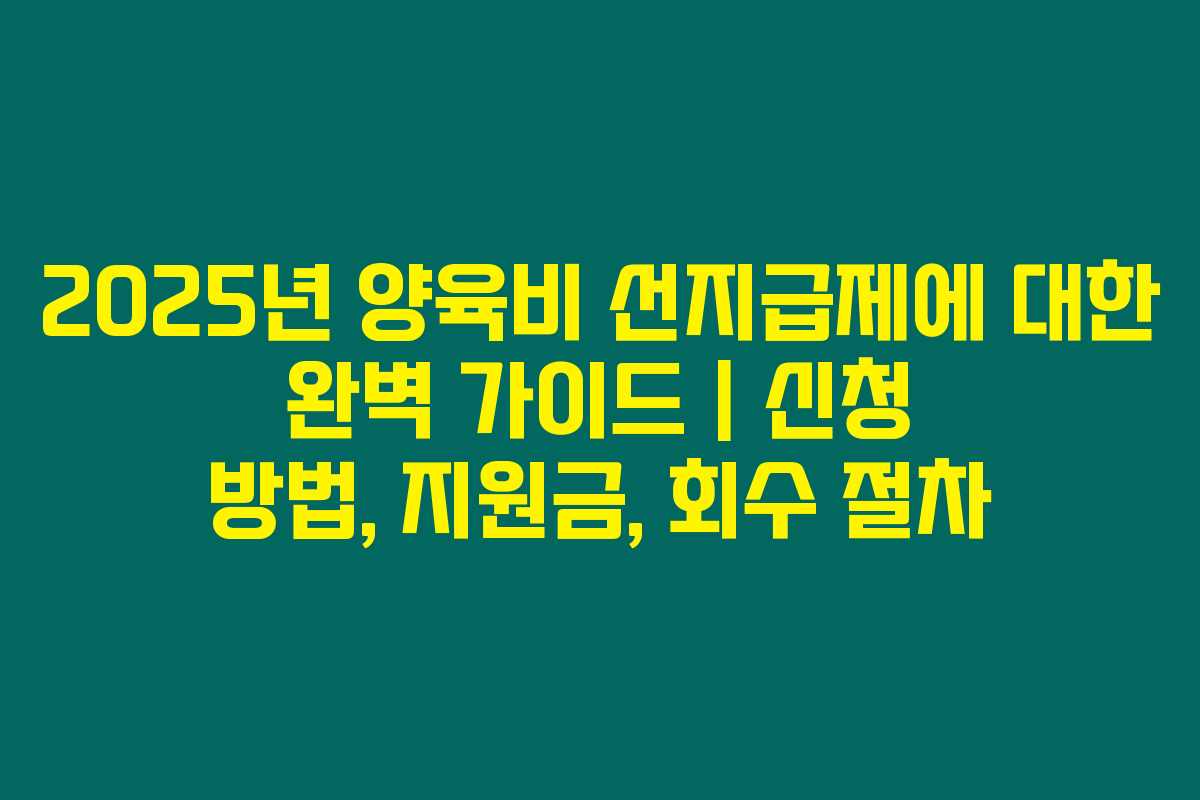 2025년 양육비 선지급제에 대한 완벽 가이드 | 신청 방법, 지원금, 회수 절차