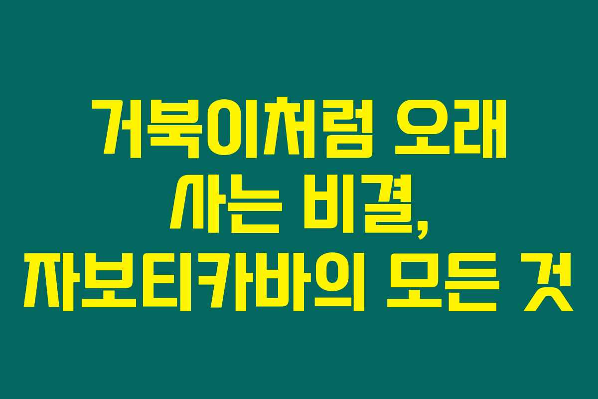 혹시 거북이처럼 오래 살고 싶으신가요? 그렇다면 자보티카바를 꼭 알아두셔야 해요! 브라질 원산의 이 독특한 열매는 항산화 성분과 비타민이 풍부하여 건강에 다양한 이점을 제공합니다. 특히 노화 방지와 면역력 강화에 효과가 있다는 사실, 잘 아시나요? 아래를 읽어보시면 자보티카바의 효능과 섭취 방법을 자세히 알려드릴게요.