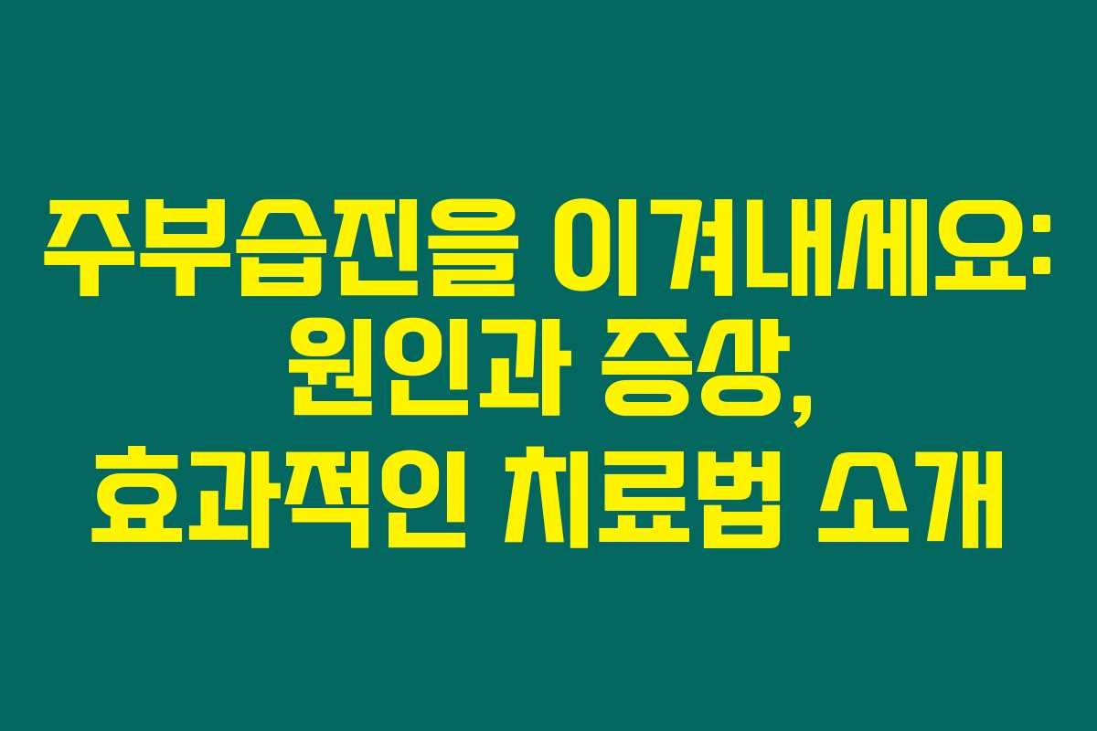 주부습진에 대한 일관된 관리가 필요해요. 치료 방법은 여러 가지가 있는데요. 그 중에서도 스테로이드 크림과 면역억제제가 가장 효과적이에요.