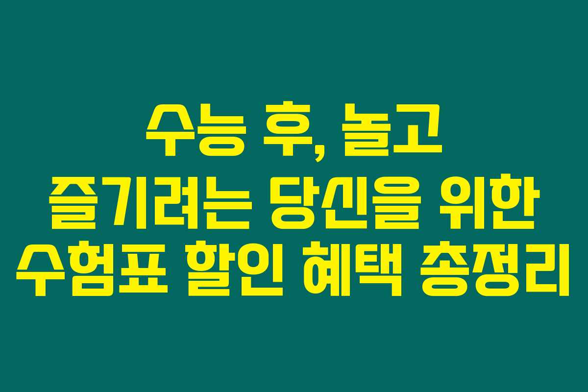 그래요. 수능이 끝나고 스스로를 격려하고 즐길 시간이에요. 수험표가 있다면 다양한 할인 혜택을 통해 더 많이 즐길 수 있다는 사실 아시나요? 수험생으로서 힘들었던 시간을 보내고 나서 누릴 수 있는 수능 할인 혜택을 누리기 위해 아래를 읽어보시면 많은 정보와 팁이 가득하답니다.