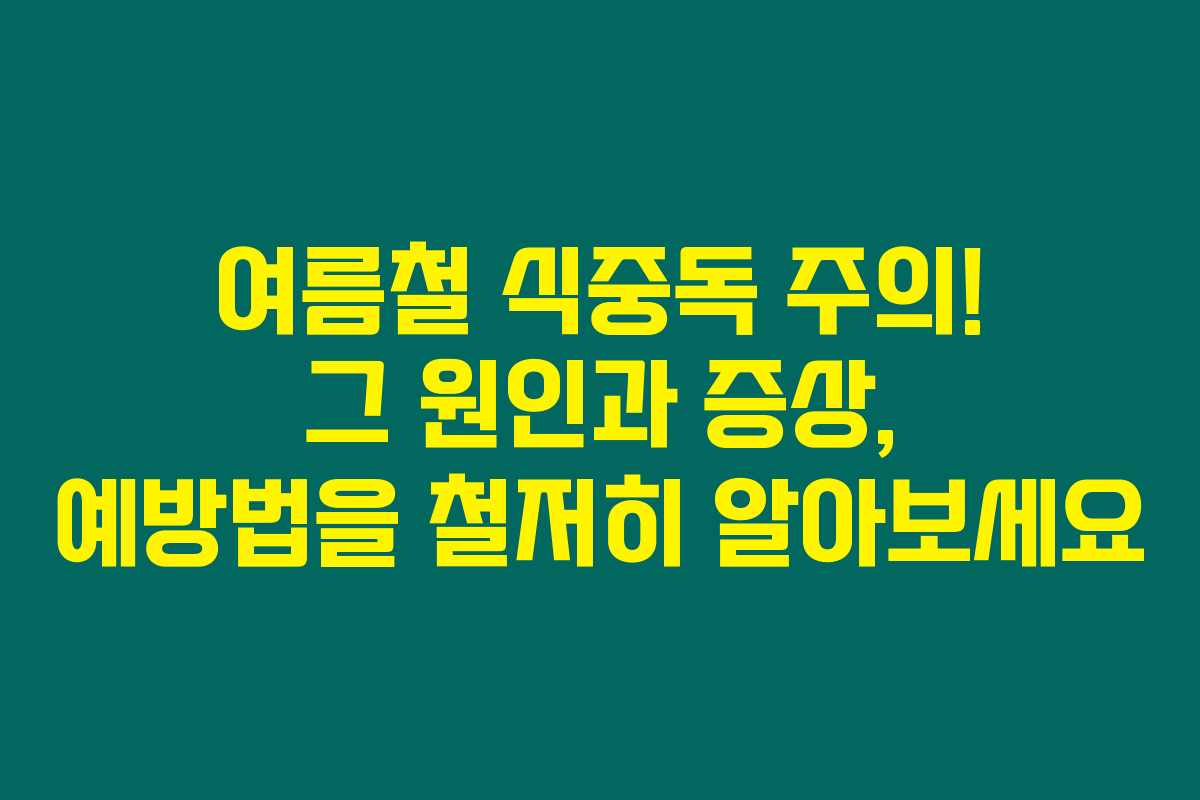 여름철 식중독이 무섭다는 사실, 알고 계신가요? 덥고 습한 여름에는 각종 세균이 활발해지면서 식중독의 위험이 크게 높아지거든요. 식중독을 예방하지 않으면 건강에 큰 위협이 될 수 있습니다. 혹시 당신도 여름철 식중독의 원인과 증상, 효과적인 예방 방법에 대해 궁금하신가요? 아래를 읽어보시면 여름철 식중독에 대한 모든 것을 알 수 있어요.