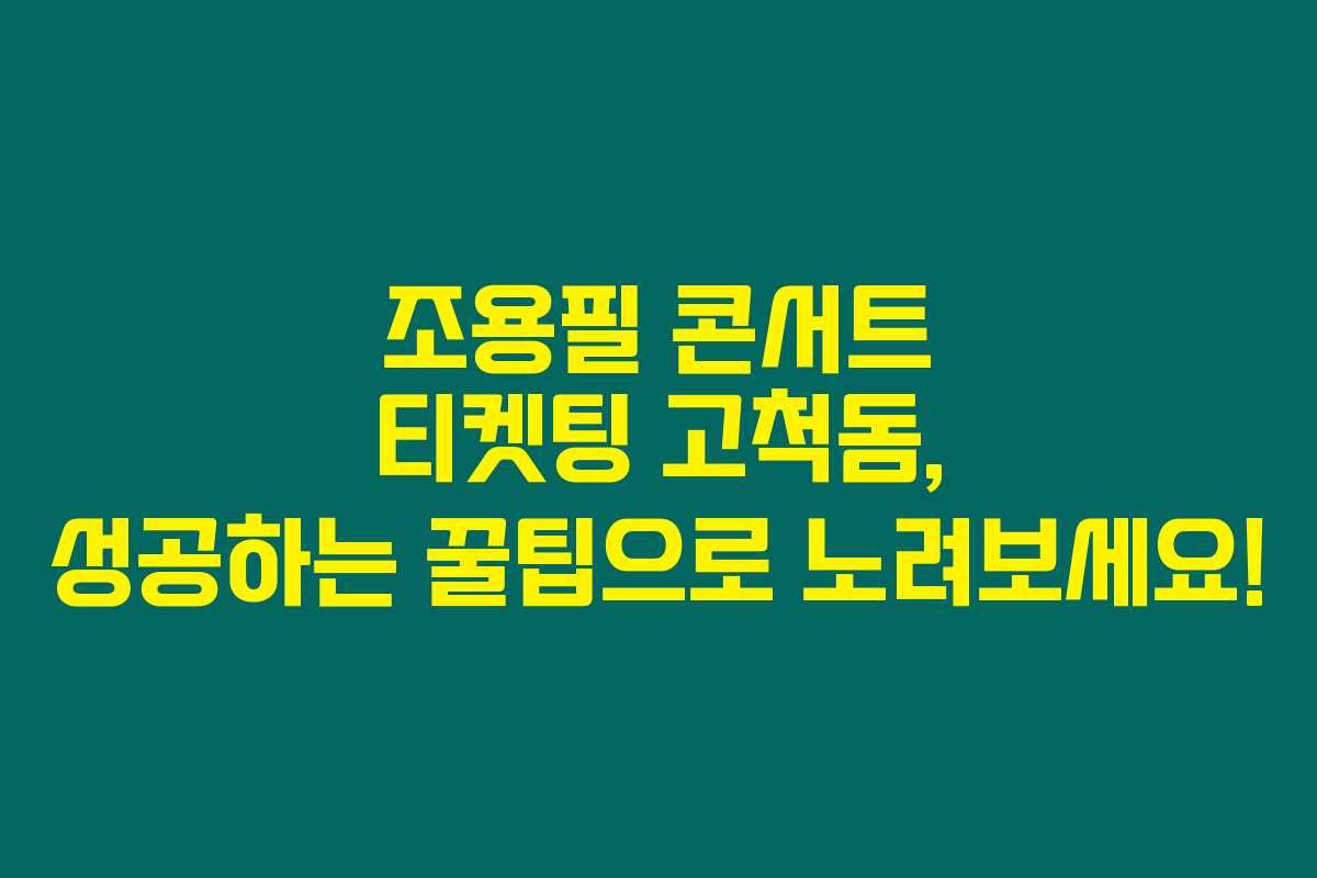 2025년 조용필 콘서트를 꿈꾸는 팬이라면, 예매 성공을 위한 노하우를 미리 숙지해야 할 때입니다. 한정된 티켓을 두고 치열한 경쟁이 예상되니, 아래를 읽어보시면 누가 먼저 길을 획득할지 고민할 필요 없다는 것을 알게 될 거예요. 중요한 티켓팅 정보를 알고 가면 더욱 유리하답니다!