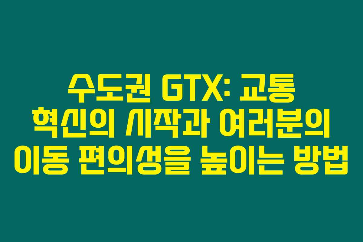 수도권 GTX: 교통 혁신의 시작과 여러분의 이동 편의성을 높이는 방법
