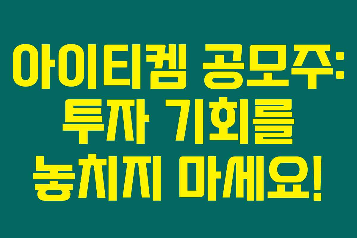 아이티켐 공모주를 고민하고 있나요? 특히 이번 공모주에서 의무보유확약과 유통물량까지 눈에 띄는 수치로 화제가 되고 있습니다. 아래를 읽어보시면 아이티켐의 사업 모델과 수익 잠재력을 파악하고, 성공적인 투자 결정을 내릴 수 있는 유용한 정보를 얻으실 수 있습니다.