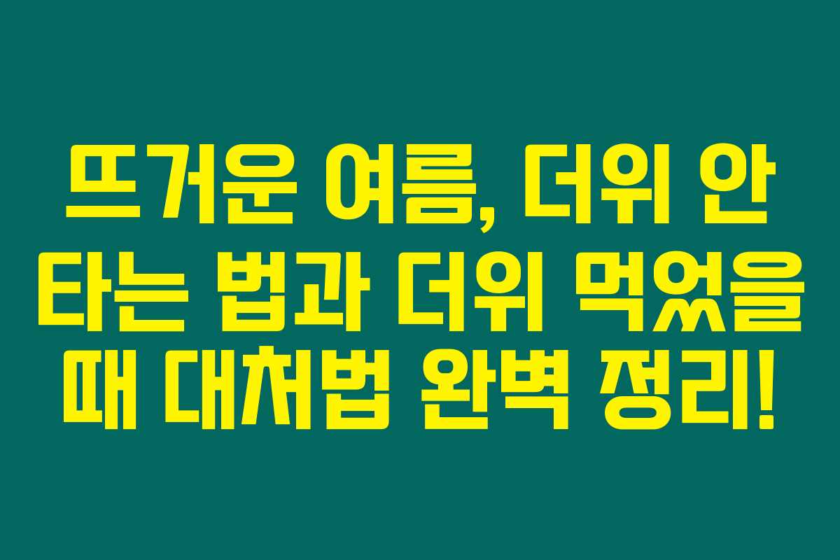 여름철, 더위 때문에 힘들어하는 분들 많죠? 더위를 먹었을 때 대처법을 알고 있다면 더위가 미치는 영향을 줄일 수 있어요. 더위를 피하고 건강하게 여름을 보내고 싶다면 아래를 읽어보세요. 정말 중요한 팁을 공유할게요!