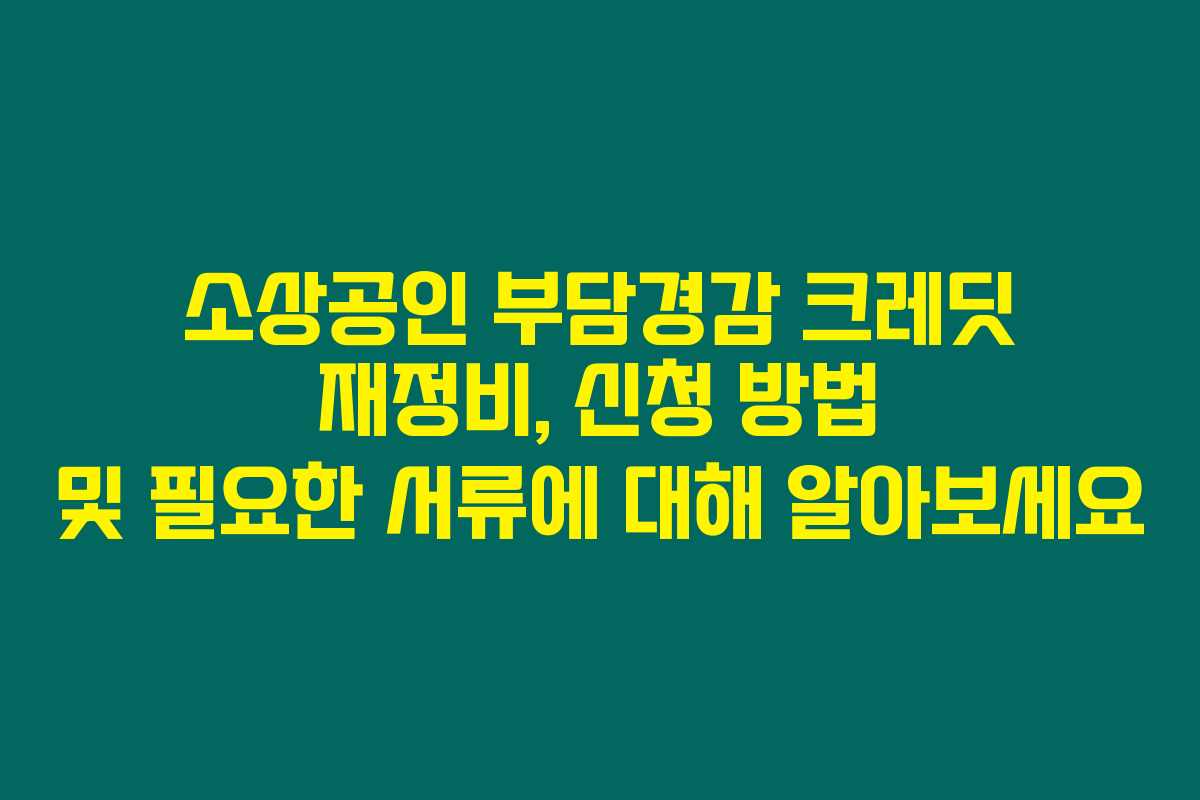 부담경감 크레딧은 소상공인에게 정말 필요한 제도에요. 신청 방법과 필요한 서류를 등등 준비한다면 큰 도움이 될 거라 생각해요. 최대 50만 원을 지원받고 고정비용 부담을 덜 수 있으니 절대 놓치지 마세요! 더 궁금한 점이 있다면 언제든지 이 글을 참조하면 좋겠어요.