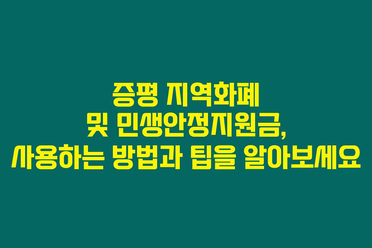 증평 지역화폐 및 민생안정지원금, 사용하는 방법과 팁을 알아보세요