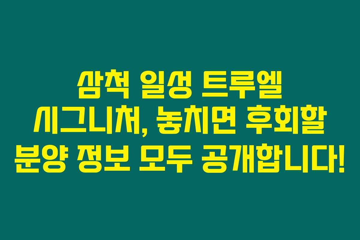 삼척 일성 트루엘 시그니처 아파트 분양에 대해 관심이 많으신가요? 만약 아파트 분양가와 평면도에 대해 궁금하다면 정말 아래 내용을 확인하셔야 해요. 예전처럼 아파트 가격이 내리지 않고 있잖아요. 이 기회를 놓치면 후회할지도 모른다는 생각이 굴뚝같거든요! 그리고 모델하우스 정보도 놓치지 마세요.