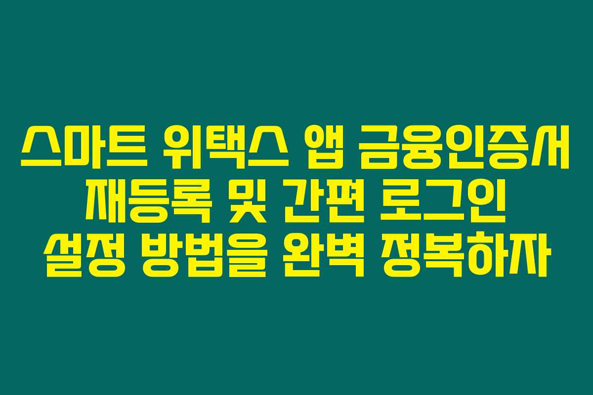 스마트 위택스 앱 금융인증서 재등록과 간편 로그인 설정 방법을 모두 알아보았어요. 이제 필요한 단계들을 쉽게 따라 하실 수 있을 거예요. 스마트한 세상에서 편리하게 이용하세요!