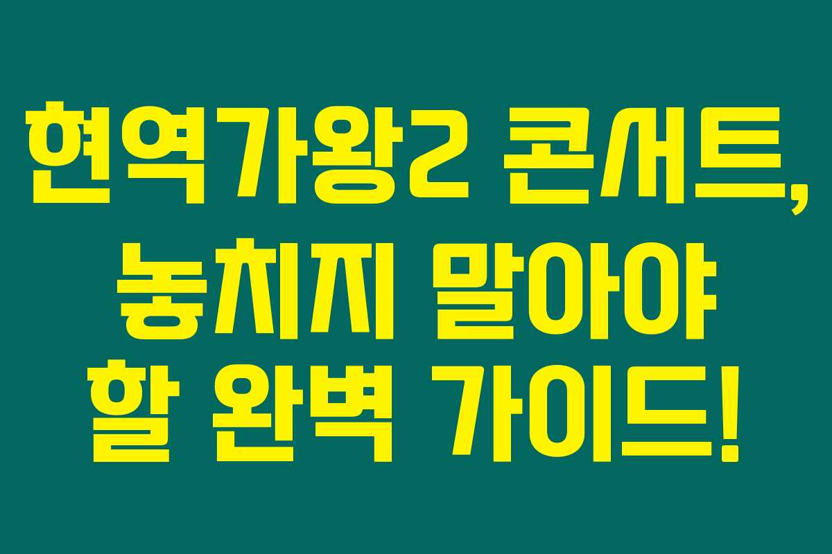 2025년 하반기 트로트 팬들에게 희소식이 가득해요! 인기 가수들이 총출동하는 ‘현역가왕2 전국투어 콘서트’가 여수, 청주, 수원, 구미, 부천, 서울에서 성대하게 진행될 예정인데요, 각 공연의 예매 일정과 주차 정보를 한눈에 정리해봤답니다. 평생 잊지 못할 감동의 무대를 만나려면 꼭 아래를 읽어보세요!