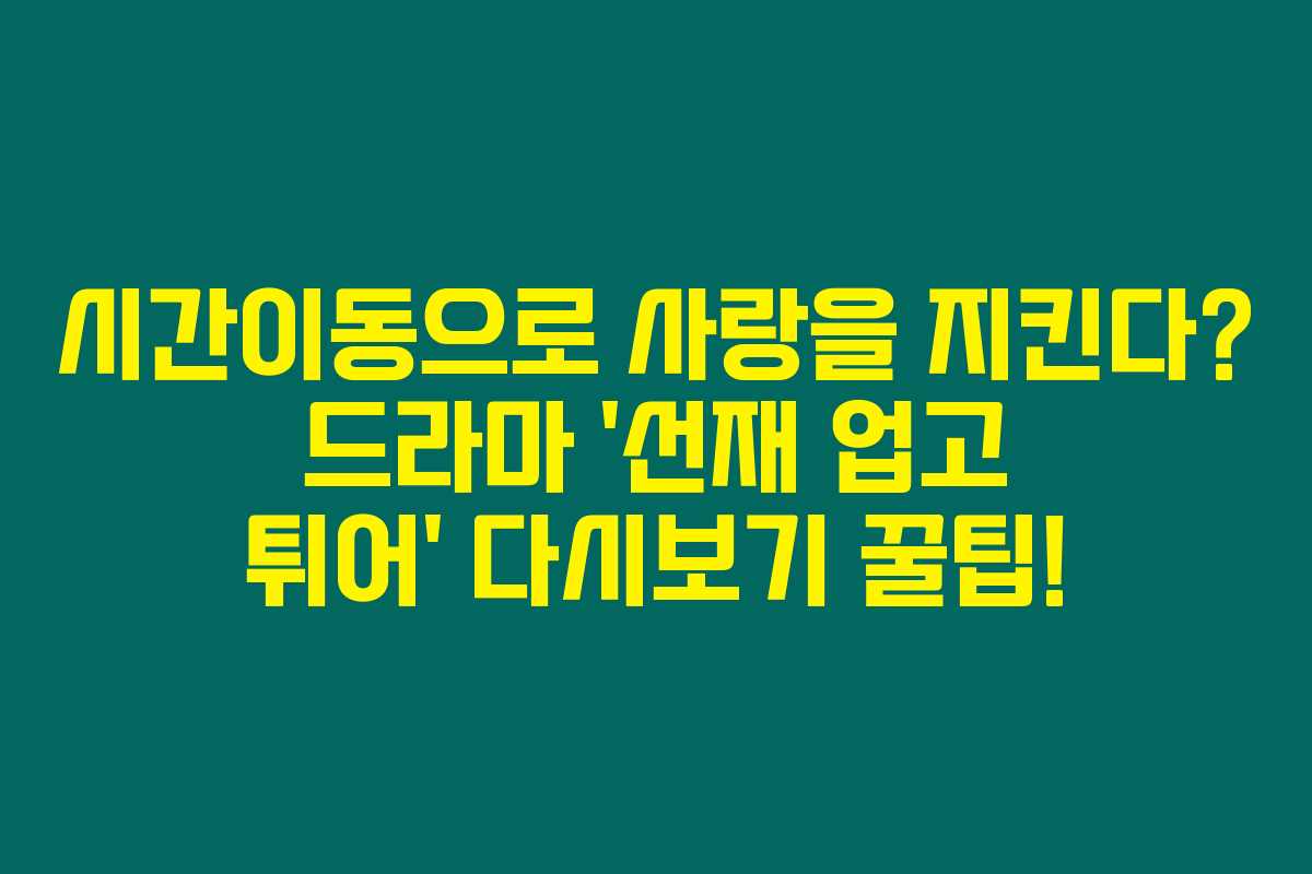 드라마 ‘선재 업고 튀어’는 사랑과 시간여행이 얽힌 흥미로운 이야기로 시청자들을 매료할 것입니다. 이 드라마의 새로운 사랑 이야기를 경험해보고 싶다면 꼭 다시보기 서비스를 활용해보세요. 여러분의 최애를 지키기 위한 감동적인 여정이 기다리고 있답니다!