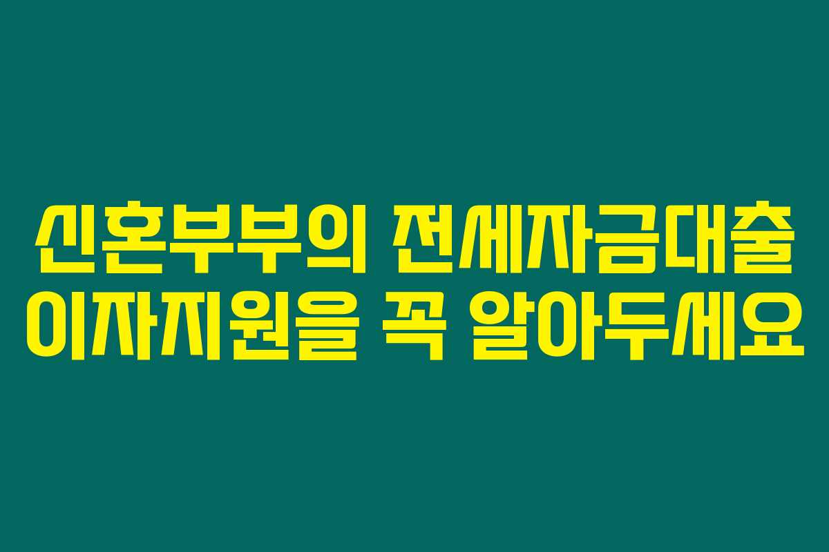 신혼부부가 처음 전세집을 알아볼 때, 대출 이자 부담은 상당한 고민거리가 됩니다. 특히 요즘 집값이 만만치 않아서 전세 자금이 없으면 힘든 상황이죠. 그럴 때 전세자금대출 이자지원이 어떻게 도움이 될 수 있을까 고민하시죠?