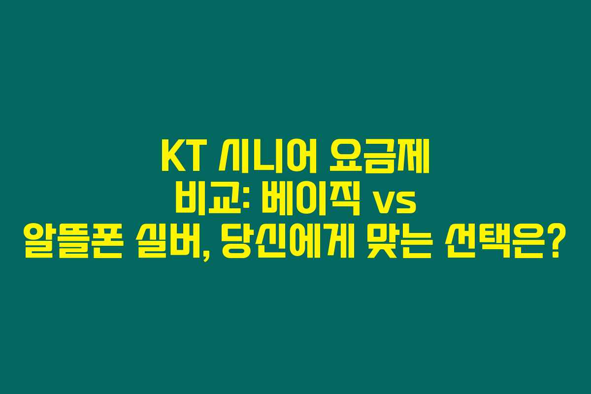 고령화 사회가 깊어짐에 따라 통신사들은 시니어를 위한 맞춤형 요금제를 잇따라 출시하고 있어요. 만약 65세 이상이라면, KT의 시니어 요금제를 알아보는 건 필수겠죠? 아래를 읽어보시면 KT의 시니어 요금제 및 KT M 모바일의 알뜰폰 시니어 요금제를 비교하여 적합한 요금제를 선택하는 데 도움을 드릴게요.