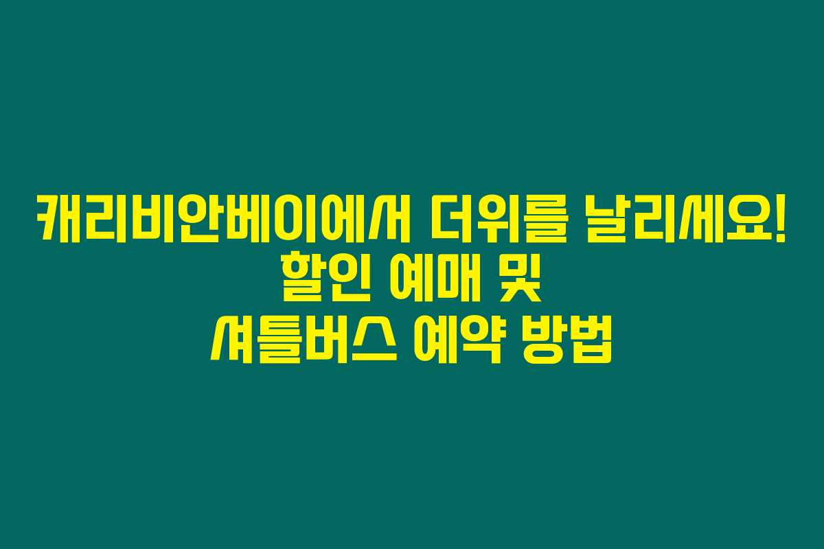준비만 잘 한다면 캐리비안베이는 더 이상 ‘힘든 워터파크’가 아니랍니다. 캐리비안베이의 교통, 할인 및 준비물 체크리스트만確認한다면 하루가 훨씬 즐겁고 여유로워질 수 있어요. 올여름에는 시원한 물놀이와 함께 잊지 못할 추억을 만들어요. 지금 바로 아래 버튼을 눌러 스마트한 여름 여행을 시작해 보세요!
