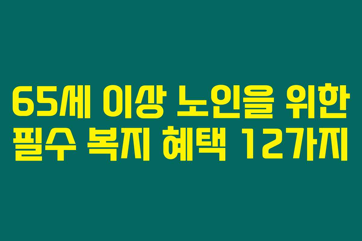 65세 이상 노인이라면 현재 제공되고 있는 복지 혜택을 꼭 알아두어야 해요. 혹시 이 복지 혜택을 잘 모르는 부모님이나 이웃이 있다면, 이 내용을 알려주면 아주 좋을 것 같아요. 생각해보세요. 요즘 같은 시대에 노인 복지 혜택을 놓치고 사는 것은 손해일 수밖에 없거든요. 아래를 읽어보시면, 65세 이상 노인 복지 혜택 12가지를 통해 많은 도움을 받을 수 있으니 유용할 거예요.