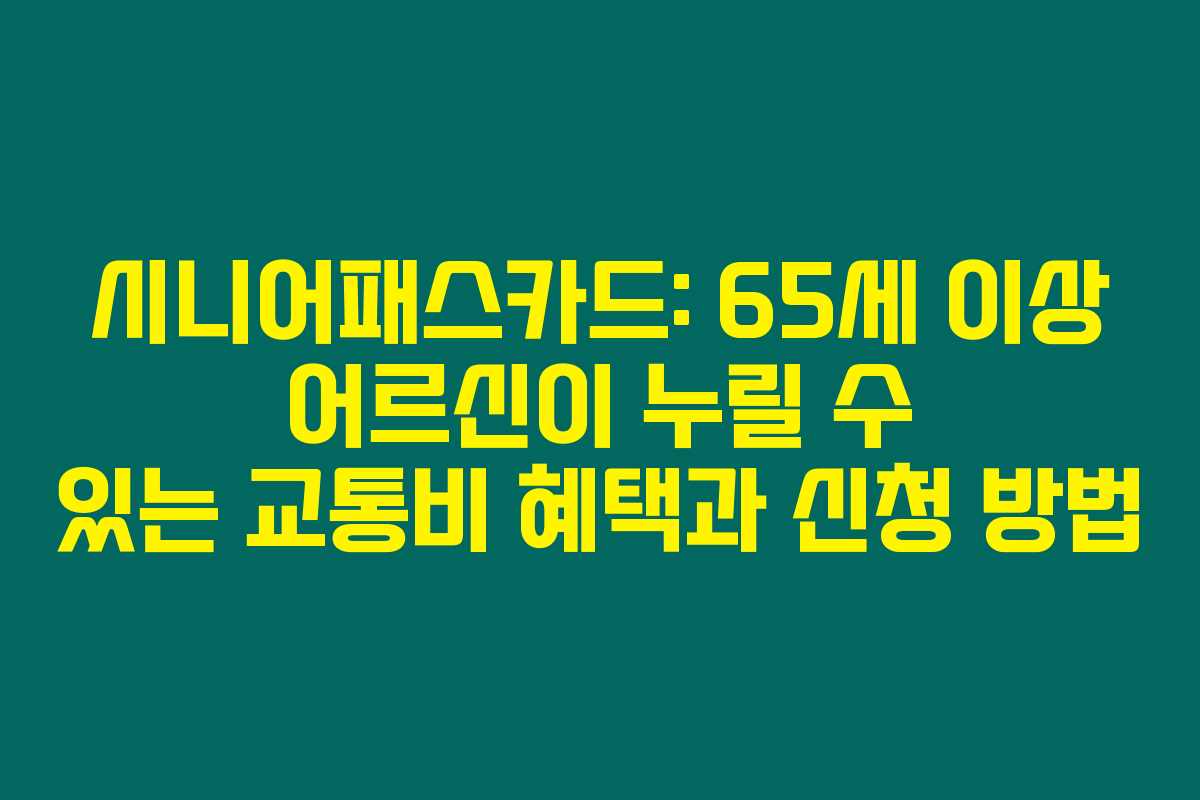 65세 이상 어르신이라면 교통비 부담에 대해 걱정하고 계신가요? 그렇다면, 앞서 소개할 시니어패스카드를 꼭 확인해보셔야 해요. 이 카드는 서울시 거주 어르신들에게 교통비 절감 혜택을 제공하는 특별한 제도랍니다. 아래를 읽어보시면 시니어패스카드의 구체적인 혜택과 신청 방법에 대해 자세히 알아볼 수 있습니다.