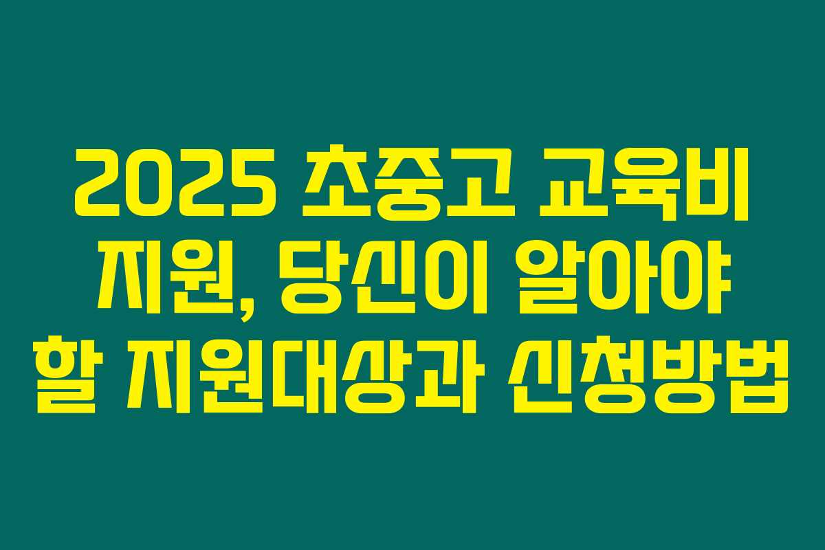 2025년 초중고 교육비 지원을 놓치지 않으려는 부모님이라면 주목하세요! 경제적 어려움을 겪고 있는 많은 가정에서 교육비 부담이 커지고 있기 때문에, 초중고 교육비 지원사업의 필요성이 그 어느 때보다 커지고 있습니다. 그렇다면 이 교육비 지원사업의 지원대상과 신청 방법에 대해 아래를 읽어보시면 자세히 알아볼 수 있습니다.
