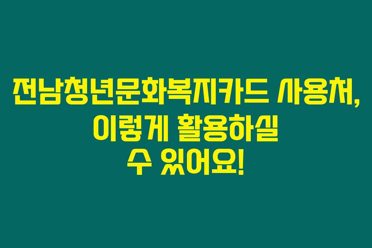 마무리하자면, 전남청년문화복지카드는 전라남도 거주 청년들에게 매우 유용한 지원제도랍니다. 다양한 문화생활을 경험하면서 자신에게 맞는 활동을 찾아보세요. 사용처와 혜택을 잘 활용해 보시면 분명 유익한 시간이 될 거예요! 추가적인 궁금증이 있으시다면 언제든지 물어봐 주세요!