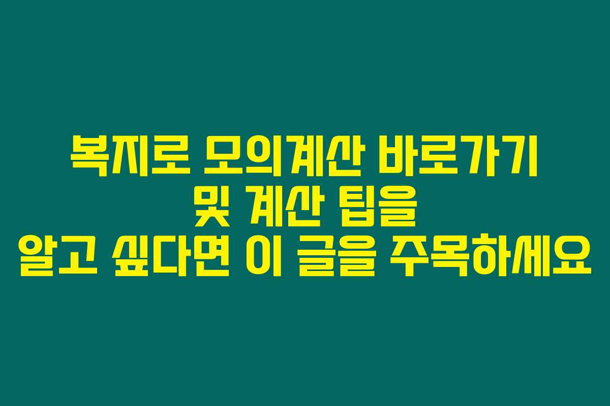 복지로 모의계산은 로그인 없이도 신속하게 이용할 수 있어요. 아래 링크를 클릭하면 바로 모의계산 페이지로 이동할 수 있어요!