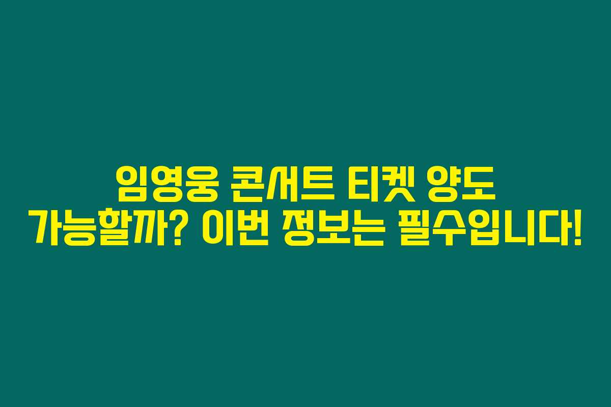 임영웅 콘서트 티켓 양도에 대한 정보를 통해, 여러분이 원하는 즐거운 시간을 만들어보길 바라요. 더 많은 정보를 원하신다면 언제든지 댓글로 질문해 주세요!