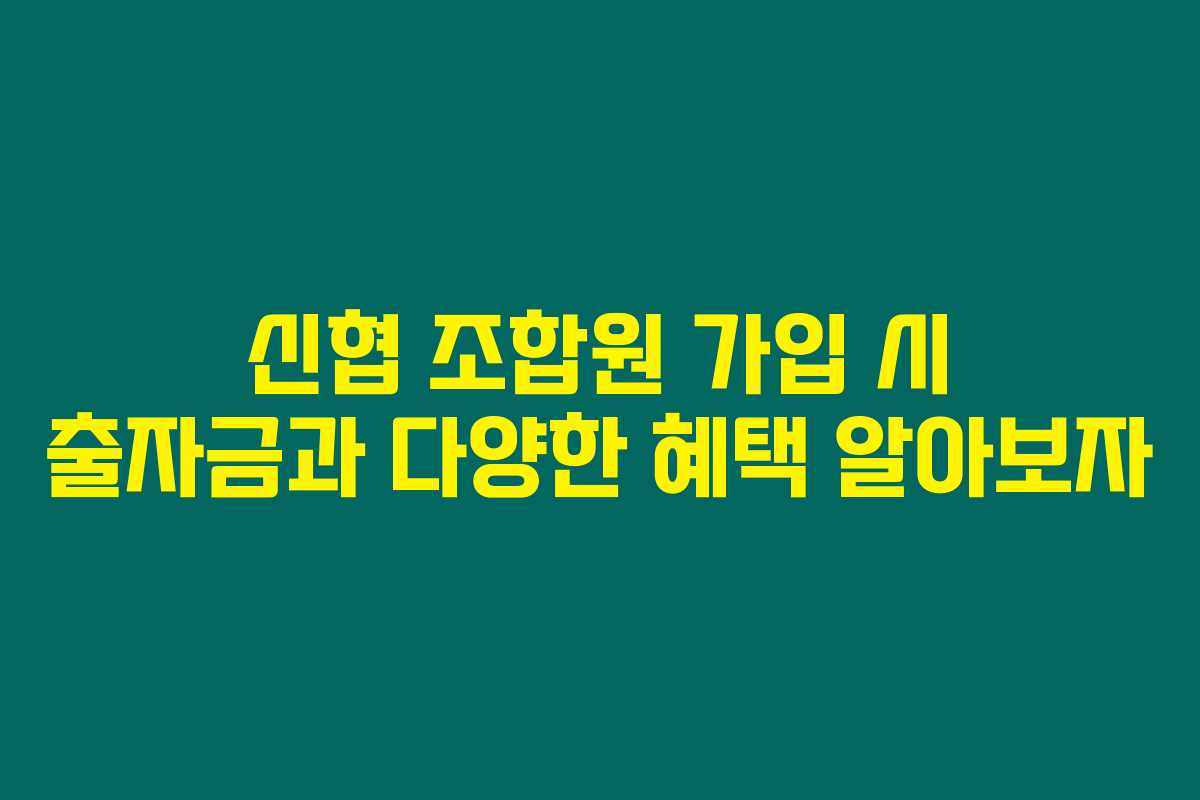 신협 조합원으로 가입하면 출자금을 통해 세금우대와 비과세 혜택을 누릴 수 있습니다. 조합원 가입은 더 많은 금융적 이점을 가져다주니 오늘 바로 가입해보세요!