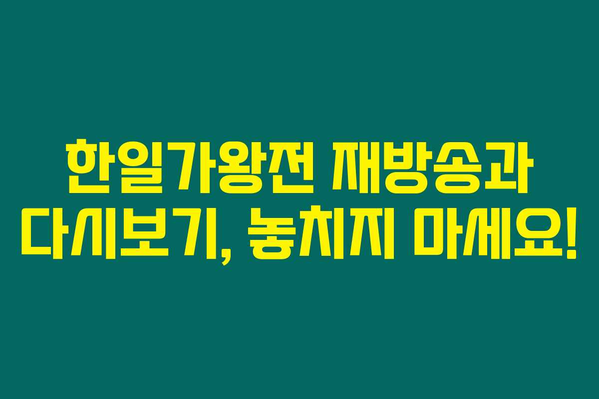 매주 기대되는 한일가왕전, 이번주 에피소드를 놓치셨다고요? 다행히도 재방송 및 다시보기 방법이 다양하게 준비되어 있답니다. 여기서 소개하는 방법을 통해 지난 방송분도 함께 즐길 수 있으니, 아래를 읽어보시면 훨씬 더 알차게 시청할 수 있을 거예요!