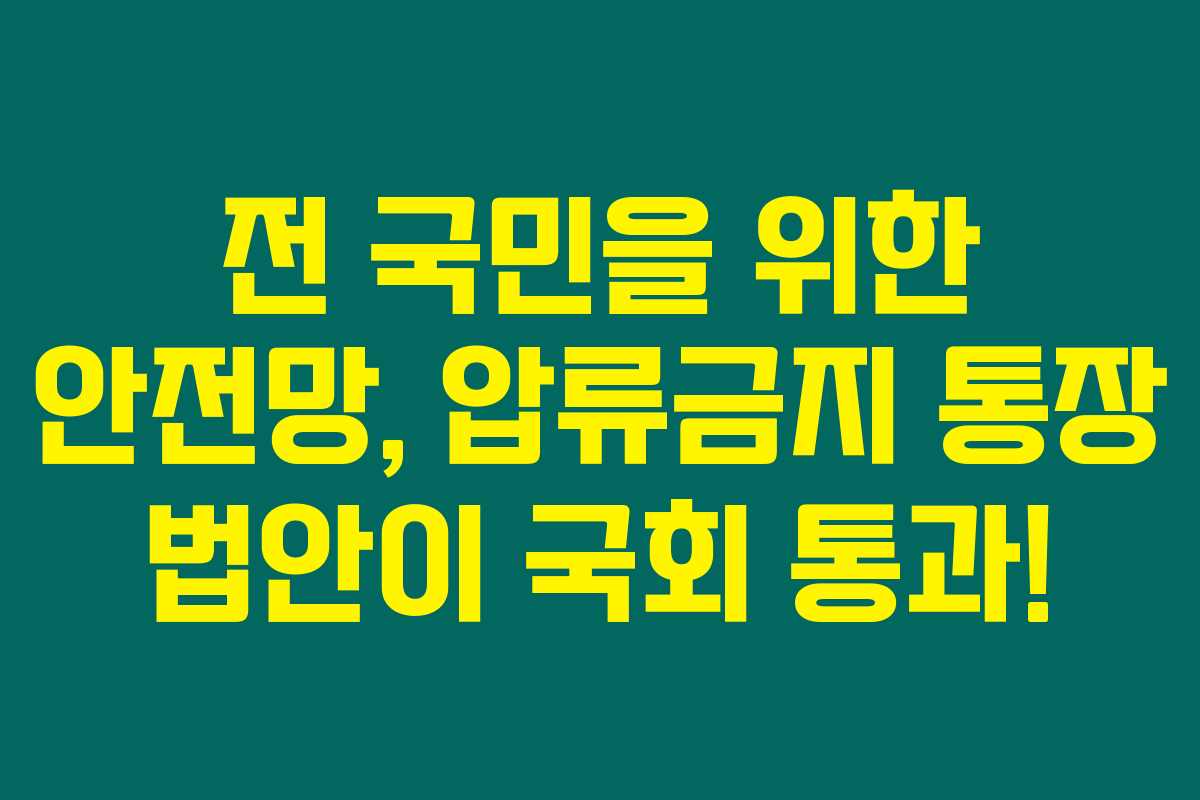 전국민 압류금지 통장 법안이 국회를 통과했다는 소식이 정말 반갑네요. 내년부터 생계비 통장을 한 개씩 개설할 수 있게 되어, 많은 분들이 안정적인 생계유지를 할 수 있을 것으로 기대됩니다. 금전적으로 어려운 분들에게 특히 큰 도움이 될 이 제도의 내용을 아래에서 자세히 알아보실 수 있습니다.