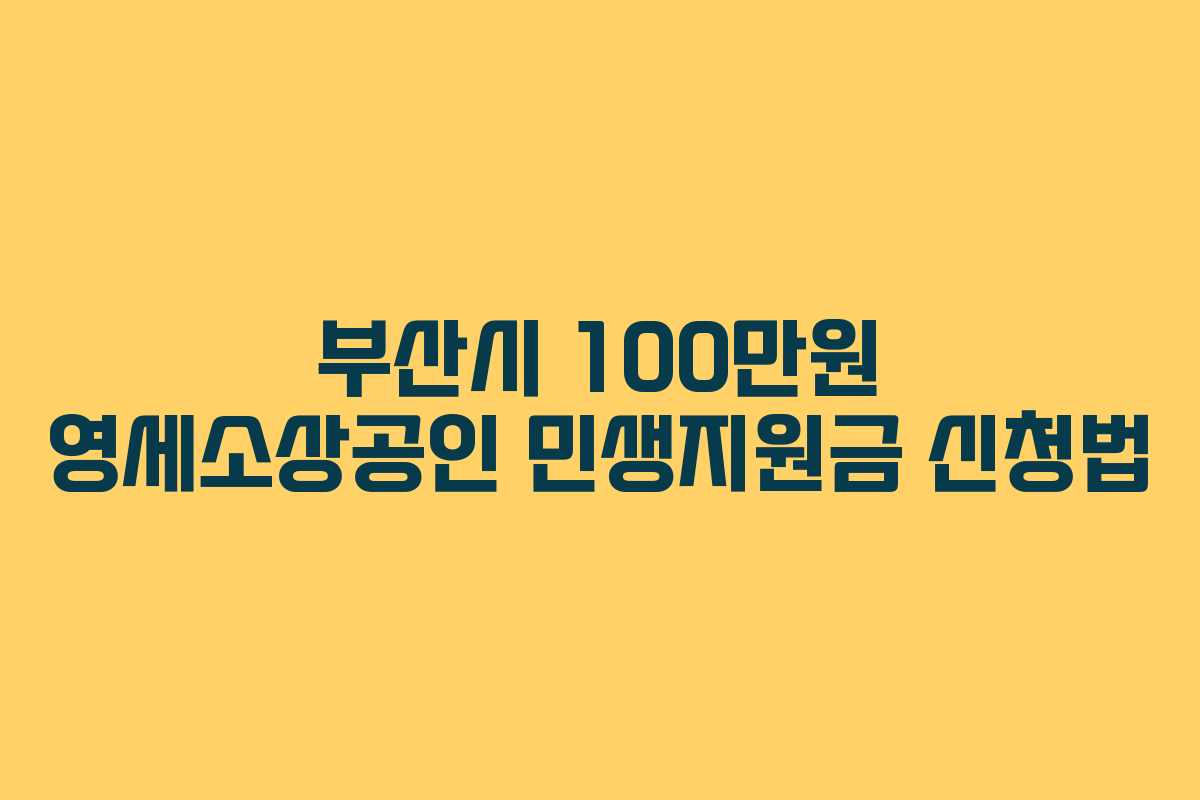 - 부산시 의 100만원 영세소상공인 민생지원금은 지역 경제의 회복을 돕는 중요한 제도입니다