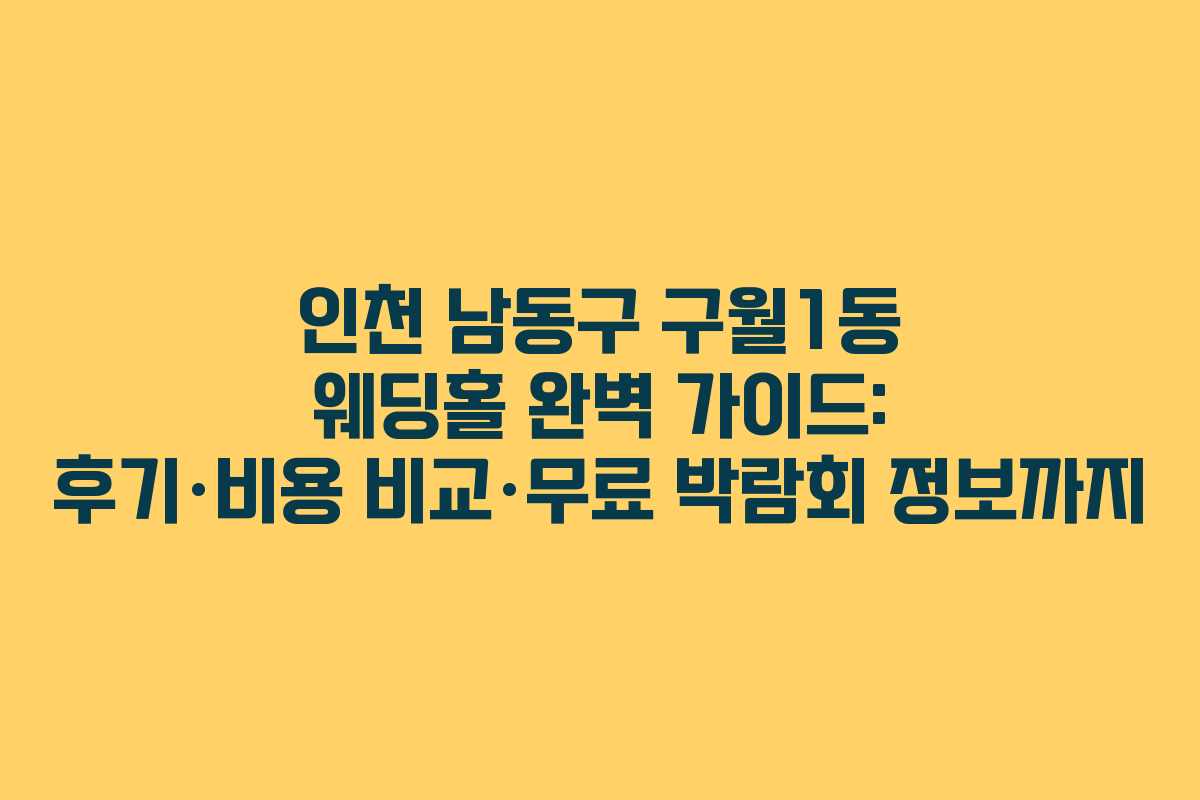 인천 남동구 구월1동 웨딩홀 완벽 가이드: 후기·비용 비교·무료 박람회 정보까지