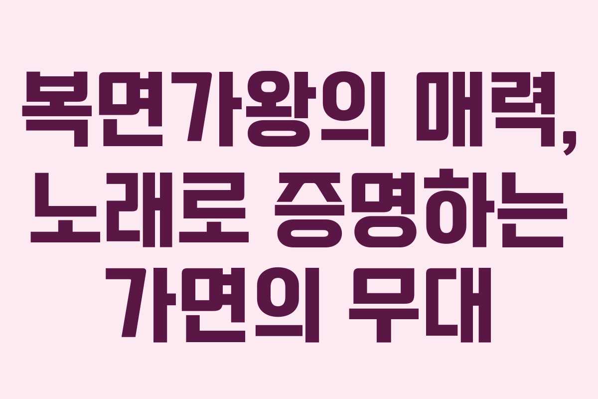 아래를 읽어보시면 복면가왕의 독특한 포맷과 역대 가왕의 매력 포인트, 노래모음의 하이라이트를 한눈에 파악할 수 있습니다.