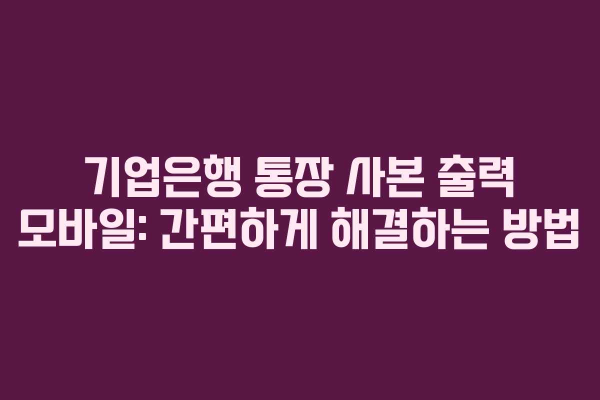 기업은행 통장 사본 출력 모바일은 모바일 앱, 웹사이트, 고객센터를 통해 상황에 맞게 선택하면 됩니다. 보안과 파일 관리도 함께 챙겨야 합니다.