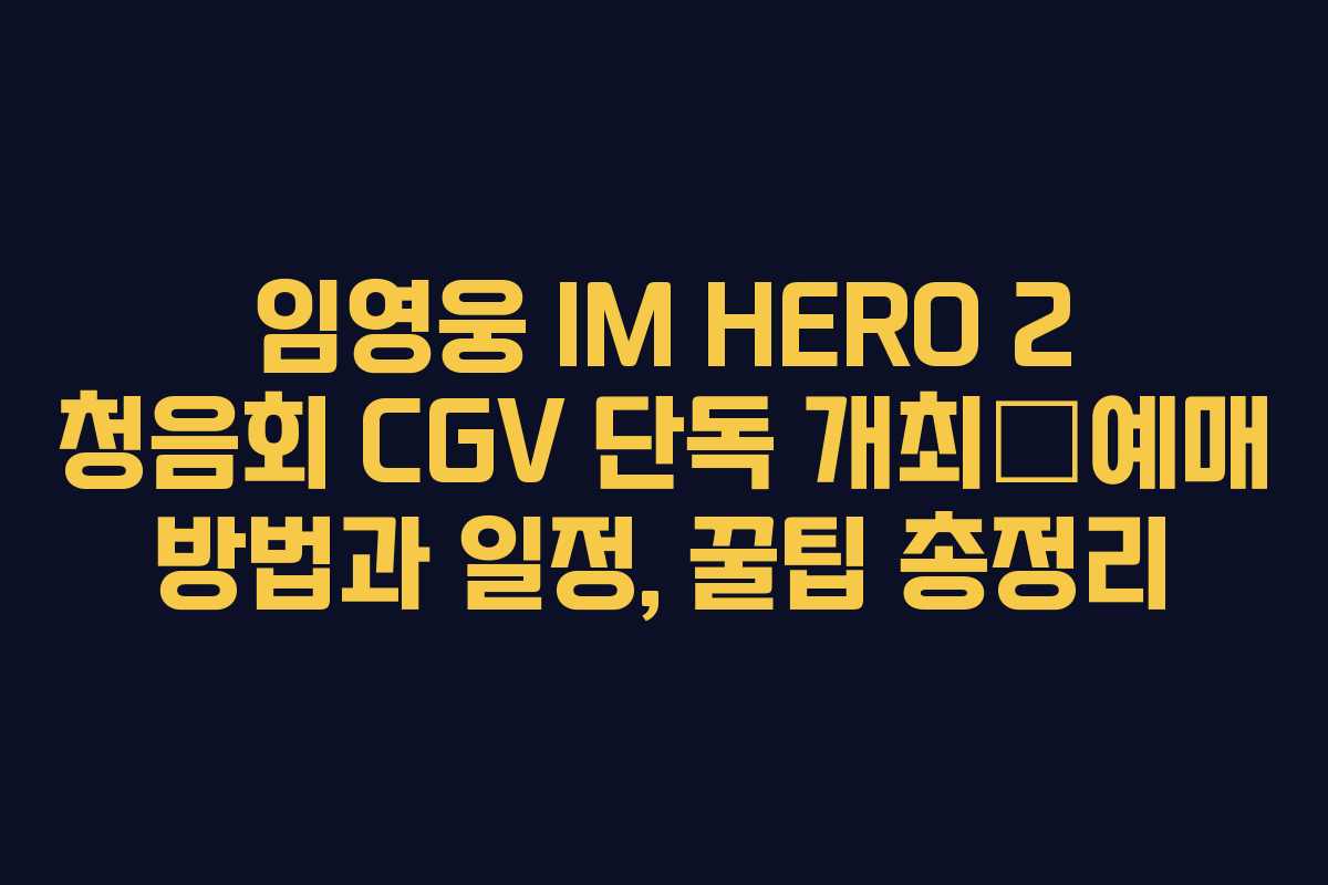 아래를 읽어보시면 IM HERO 2 청음회의 핵심 일정과 가격, 현장 팁을 한눈에 파악하고, 예매를 안정적으로 마무리할 수 있는 방법이 정리되어 있습니다. CGV 50개 극장 동시 상영으로 열리는 이번 행사는 전곡 공개와 MV 첫 선보임까지 알찬 구성으로 다가옵니다.
