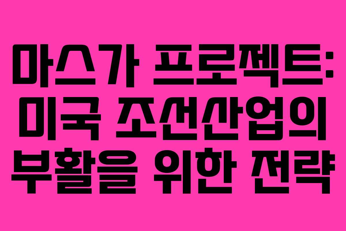 마스가 프로젝트는 미국 조선산업의 부흥을 통해 경제 성장과 고용 창출을 목표로 하고 있습니다.