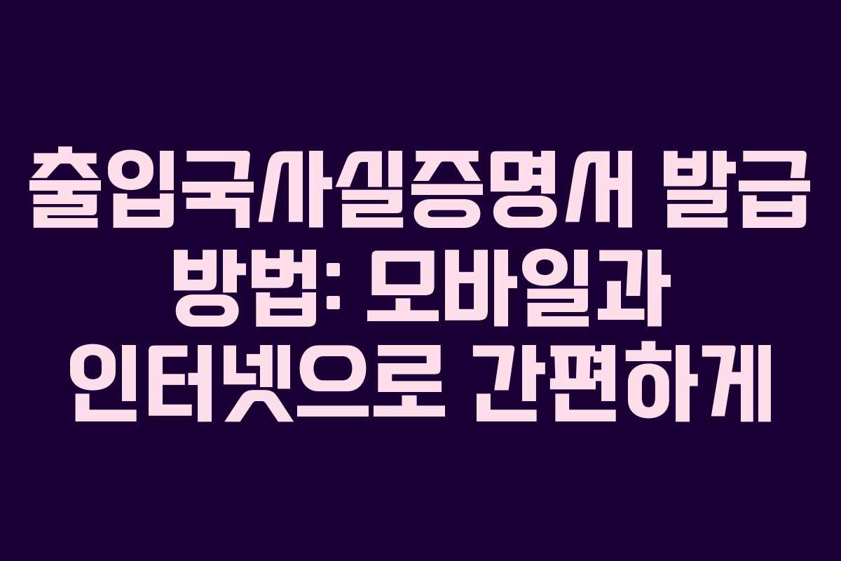 출입국사실증명서는 해외 출장을 다녀오거나 비자 신청 시 자주 필요한 서류입니다. 2025-08 기준으로, 이제는 모바일이나 인터넷을 통해 손쉽게 발급받을 수 있는 방법이 있습니다. 아래를 읽어보시면 해당 방법에 대해 자세히 안내드립니다.