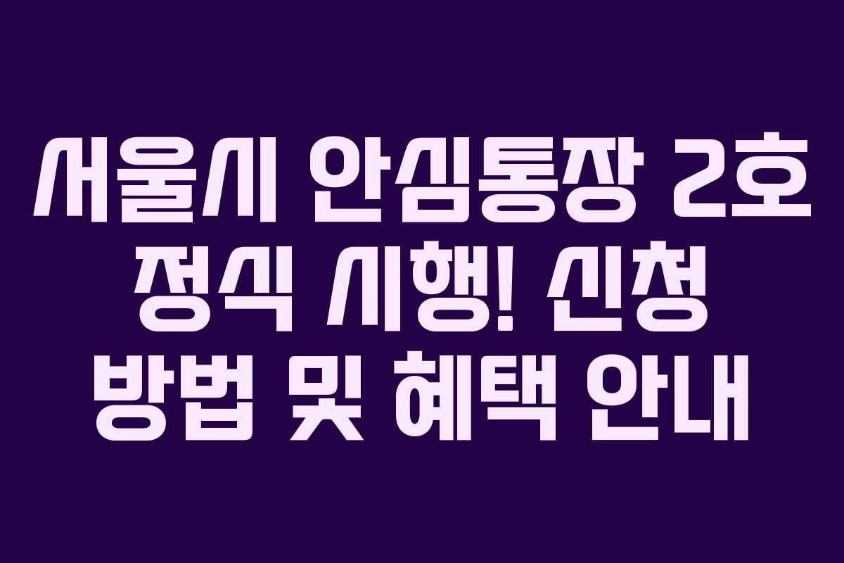 2025년 9월부터 서울시에서 저소득층을 위한 자산형성 지원 통장인 안심통장 2호가 정식으로 시행됩니다. 이 통장은 근로 중인 저소득 시민이 매달 일정 금액을 저축하면 서울시와 민간이 함께 지원금을 매칭해 주는 프로그램입니다. 이 통장을 통해 3년간 저축을 유지하면 약 720만 원 이상의 목돈을 받을 수 있습니다.
