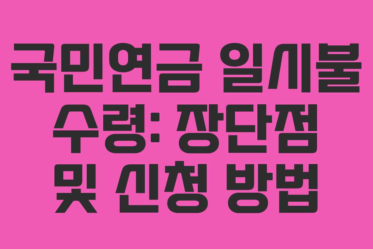 국민연금은 많은 사람들이 경제적으로 안정된 노후를 준비하기 위해 필수적인 제도입니다. 그중에서도 국민연금 일시불 수령은 큰 금액을 한 번에 받을 수 있어 새로운 도전을 가능하게 하지만, 이에 따른 단점도 존재합니다. 이번 글에서는 국민연금 일시불 수령의 장단점, 신청 방법, 주의사항 등을 자세히 알아보겠습니다.