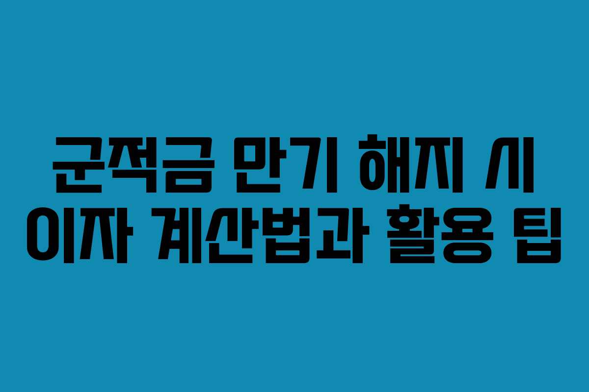 군적금은 군 복무 중인 장병들에게 제공되는 특별한 금융상품으로, 안정적으로 목돈을 마련할 수 있는 기회를 제공합니다. 만기 후 해지 시 받을 금액을 정확히 계산하는 것은 매우 중요합니다. 이 글에서는 군적금 만기 해지 시 이자 계산법과 활용 팁에 대해 알아보겠습니다.