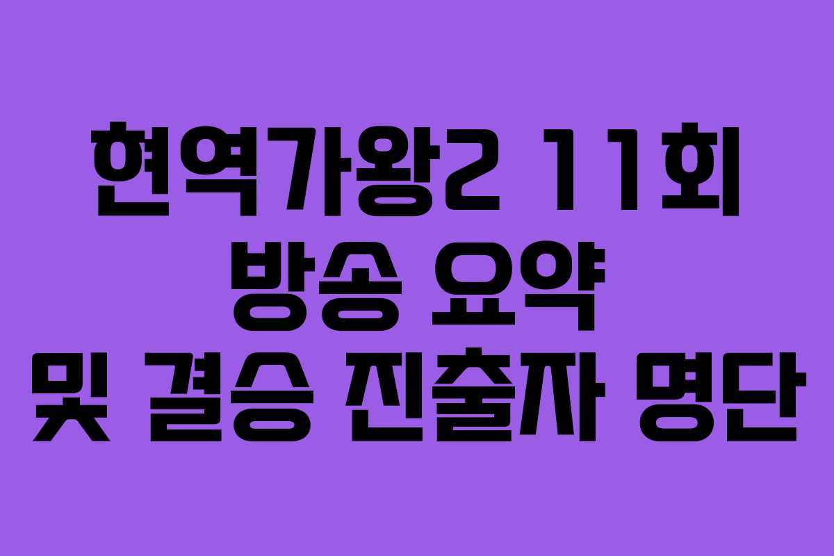 최근 방송된 현역가왕2 11회에서는 준결승 2차전이 진행되었으며, 1대 1 장르대첩 이후 막장전이 펼쳐졌습니다. 이 회차에서 1라운드와 2라운드의 점수 및 온라인 투표 결과가 합산되어 최종 결승 진출자 10명이 확정되었습니다.