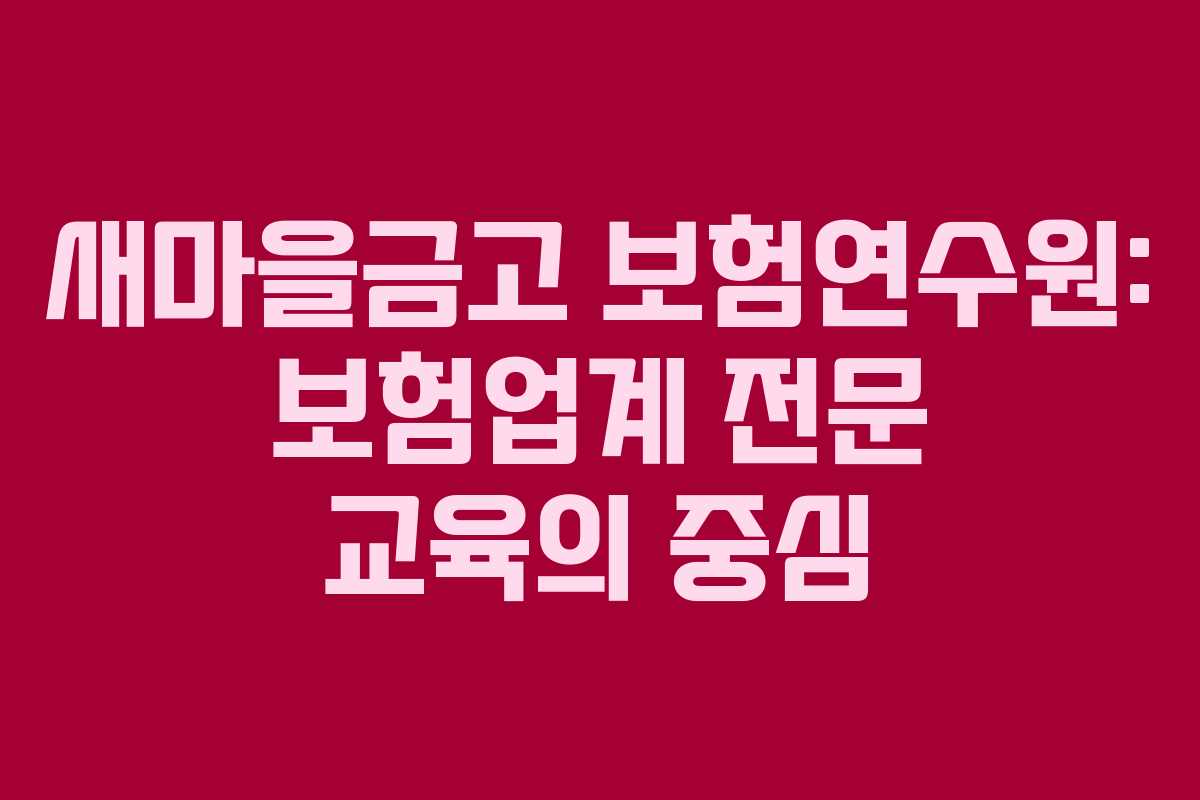 보험업계 종사자들을 위한 전문 교육기관인 새마을금고 보험연수원은 보험 관련 지식과 기술을 습득할 수 있는 필수적인 장소입니다. 이 연수원은 다양한 교육 프로그램을 통해 보험업계의 전문성을 높이는 데 기여하고 있습니다.