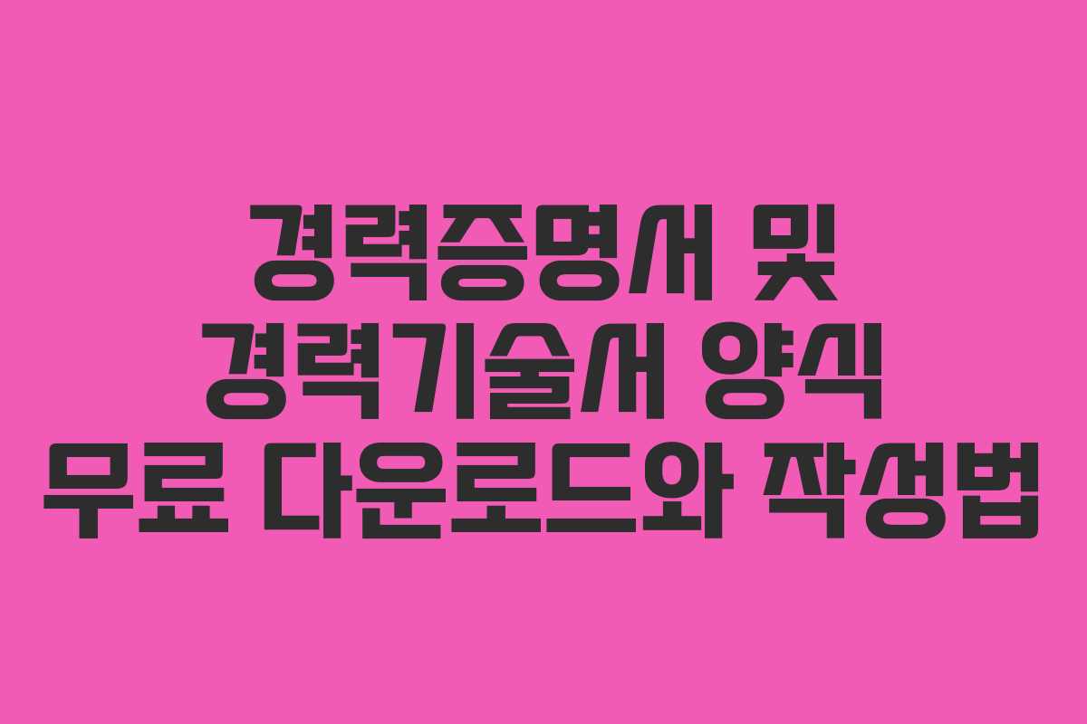 이직을 고려하는 직장인에게 경력증명서는 매우 중요한 서류입니다. 이번 글에서는 경력증명서와 경력기술서의 양식을 무료로 다운로드할 수 있는 방법과 작성 방법에 대해 자세히 설명하겠습니다.